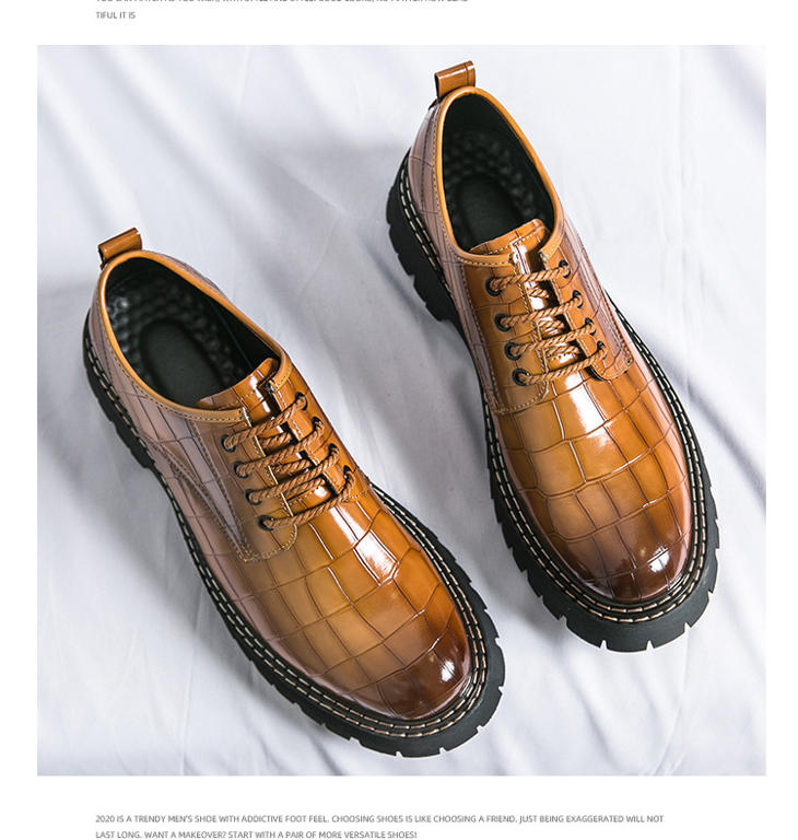 Men’s Large Leather Shoes with Low Cut Design Thick Soled Comfortable Breathable Anti-Slip Wear-Resistant for Autumn Trends